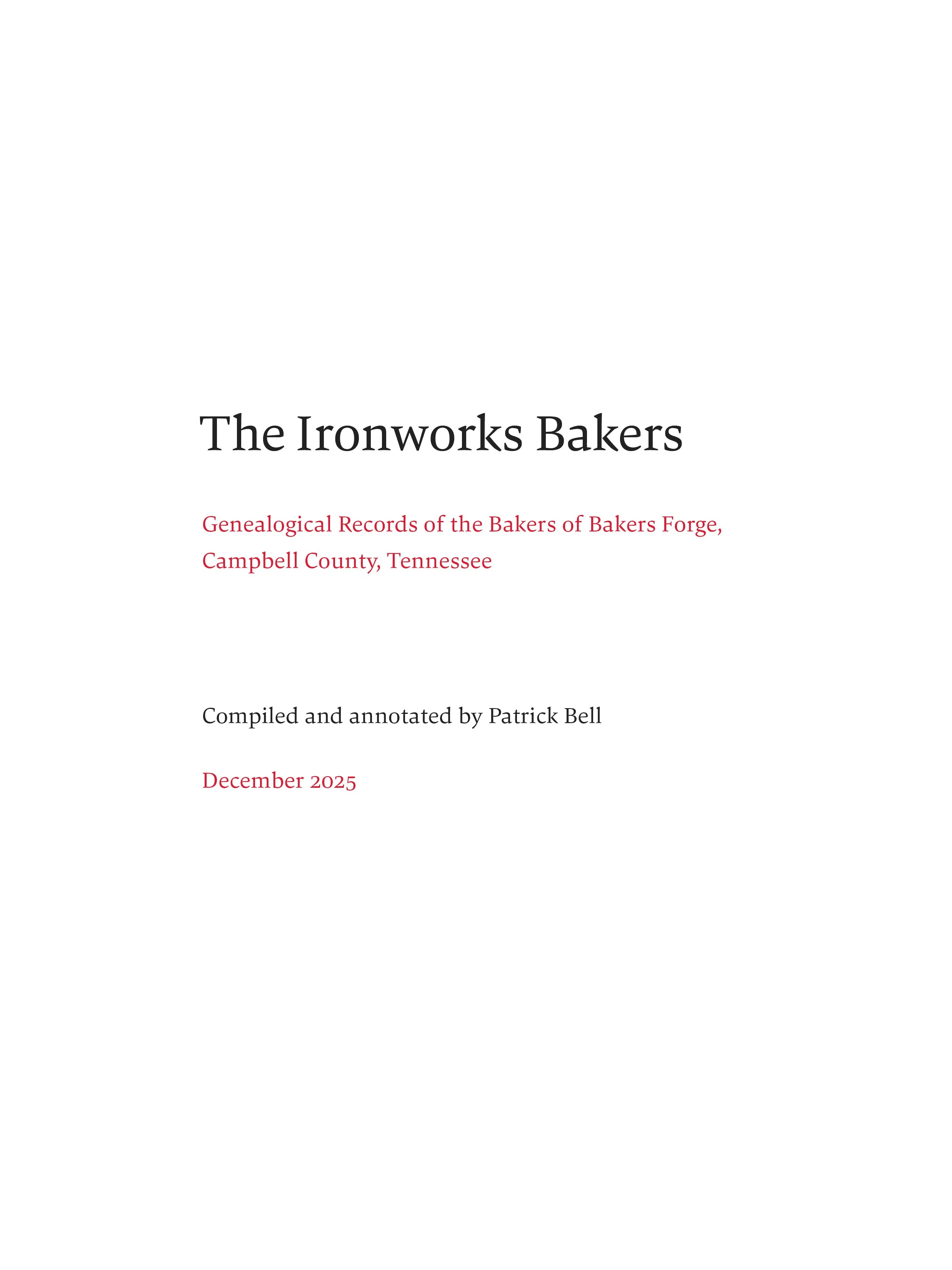 The Ironworks Bakers: Genealogical Records of the Bakers of Bakers Forge, Campbell County, Tennessee